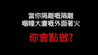 | 忽然有人拍門,話隔離嘅隔離 嘅隔離嗰幢大廈 嘅外牆著火,叫你快啲走,你會點做? | |