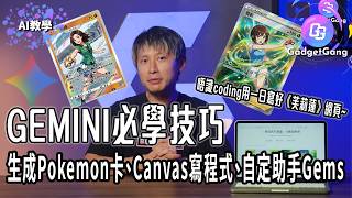 | 【Gemini香港開通】用Canvas零程式基礎寫完《芙莉蓮》網頁?實測生成Pokemon卡+自定助手Gems教學、推介Lovart修改AI圖、AI專家Keith Li分享Vibe Coding趨勢! | |