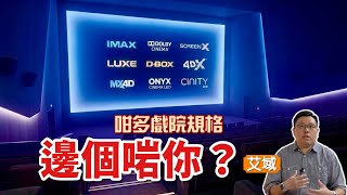 | 一片講晒 IMAX、Dolby Cinema、SCREENX、LUXE、D-BOX、4DX、MX4D、Onyx Cinema LED、CINITY LED 戲院系統|艾域主持 | |